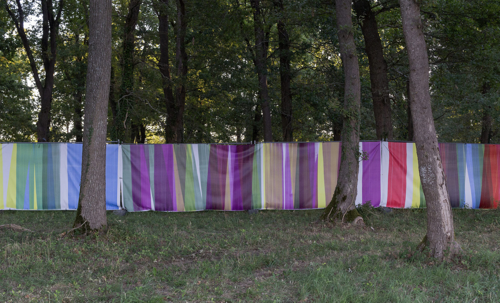 Très attaché à la prise en compte du contexte au sein de son travail, Damien Auriault met en récit l’architecture et questionne la perception. Ses œuvres offrent différents points de vue aux spectateurs en fonction des conditions d’observation (orientation, distance, luminosité). Visuellement cela se traduit par un langage simple et coloré s’appuyant sur des motifs, des trames et des formes géométriques. Ainsi il explore le champ des possibles de la peinture au travers de l’outil et du mouvement tout en conservant un maximum de simplicité.